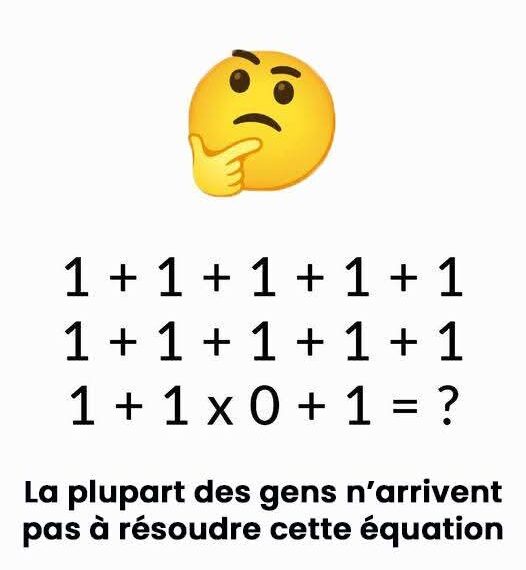 Un simple calcul peut-il vraiment mettre votre logique à l’épreuve ? L’équation suivante semble facile, mais attention, elle pourrait bien révéler des surprises sur votre façon de penser.L’équation à résoudre : un défi cachéL’équation proposée est la suivante :1 + 1 x 0 + 1 = ?À première vue, elle paraît banale, mais sa complexité réside dans la manière dont nous appliquons les règles mathématiques. Une erreur d’interprétation peut facilement fausser le résultat.Les pièges des règles de prioritéPour résoudre correctement cette équation, il est essentiel de se rappeler des règles de priorité des opérations mathématiques :