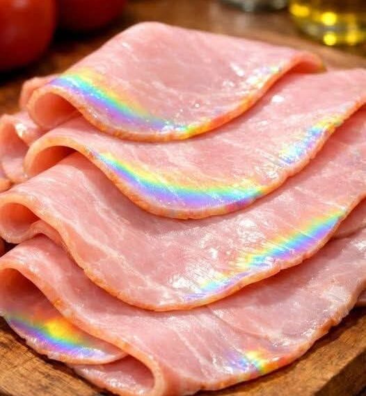 Vous est-il déjà arrivé de sortir une tranche de jambon du réfrigérateur et de remarquer son aspect chatoyant , presque métallique, avec des reflets irisés – verts, bleus ou violets – qui scintillent à la lumière ? C’est saisissant. Est-ce de la moisissure ? Le jambon est-il avarié ? Dois-je le jeter ?Bonne nouvelle : dans la plupart des cas, cette lueur irisée est totalement inoffensive . Il ne s’agit pas d’un signe de détérioration, mais plutôt d’un phénomène fascinant de physique et de science alimentaire. Examinons cela de plus près.