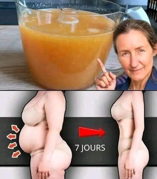 Cette image semble présenter la recette d’une « boisson détox ventre plat » censée purifier et revitaliser l’organisme rapidement. D’après l’image, il est probable que cette boisson contienne des ingrédients destinés à faciliter la digestion, réduire les ballonnements et potentiellement favoriser la perte de poids sur une courte période, par exemple 7 jours.Voici une idée générale de ce que pourrait contenir une telle boisson :Ingrédients (courants dans les boissons détox de ce type) :Vinaigre de cidre – Souvent utilisé pour son potentiel à faciliter la digestion et à équilibrer la glycémie.Citron – Reconnu pour ses propriétés détoxifiantes et sa richesse en vitamine C.Gingembre – Couramment utilisé pour faciliter la digestion et réduire les ballonnements.La cannelle – une épice qui peut faciliter le métabolisme et contribuer à la régulation de la glycémie.Miel – Un édulcorant naturel, souvent utilisé pour apaiser et favoriser la santé intestinale.Eau – La base pour diluer le mélange et contribuer à l’hydratation.